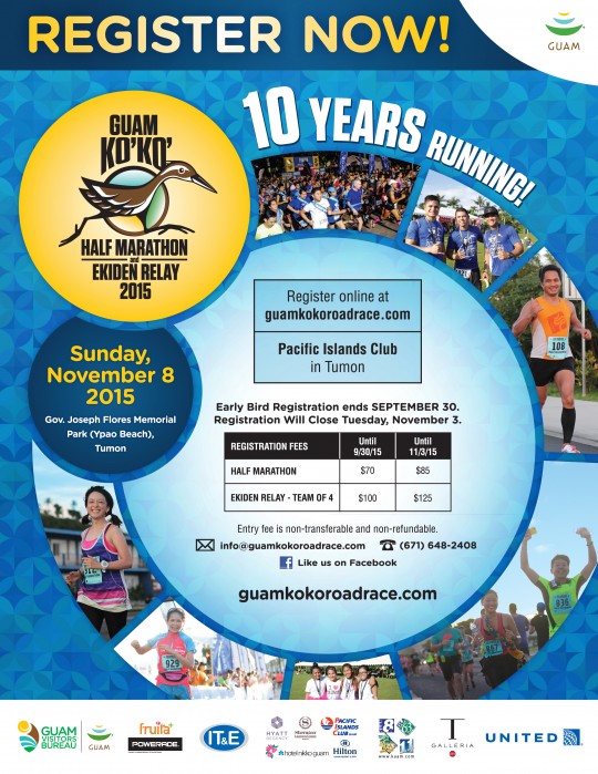 The Guam Ko’ko’ Road Race is Guam’s elite Ekiden relay and half-marathon, so named to raise awareness of the plight of Guam’s territorial bird, the Guam rail or ko’ko’.
