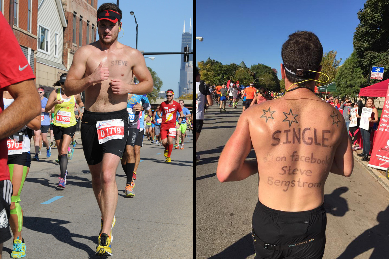 It’s all over social media, Chicago Marathoner Steve Bergstrom Lands Date from Personal Ad Written on His Back. The newly single Steve had this great idea turning his back into his own personal billboard, the objective? To look for a date.