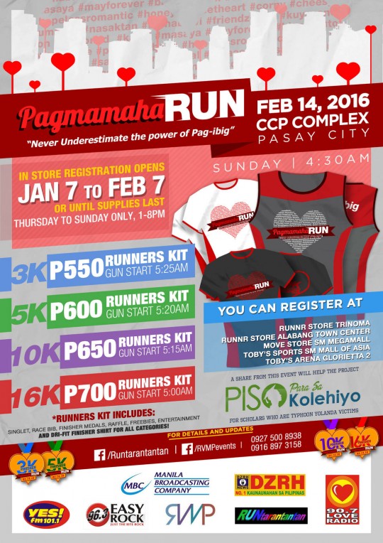 Never underestimate the power of PAG-IBIG! PagmamahaRUN is set to happen on Valentine’s Day 2016! Save The Date…It’s a Date!