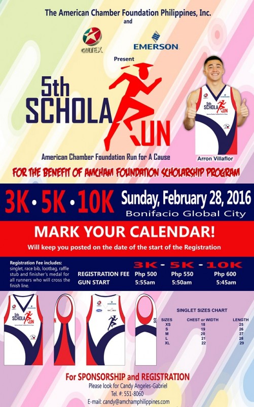 The American Chamber Foundation Philippines is gearing up for its 5th AmCham ScholaRUN happening on February 28, 2016. Proceeds from this event will be used to fund the foundation’s scholarship program.