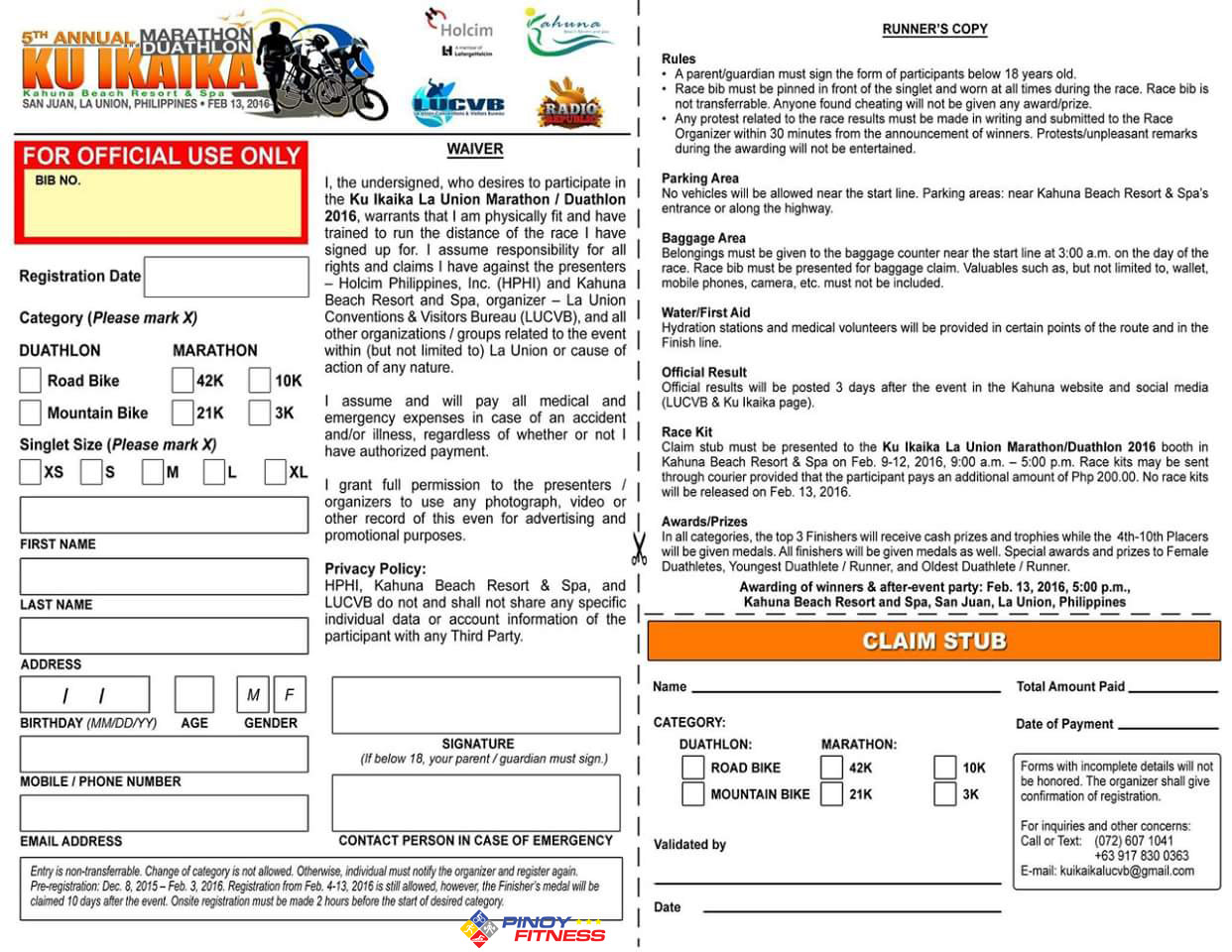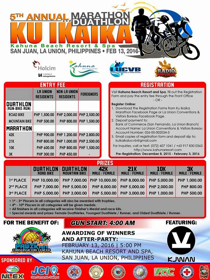Ku Ikaika Marathon/Duathlon, which will mark its 5th year, will once again showcase sports tourism in La Union on February 13, 2016. Ku Ikaika, which means “only the strong will endure,” will have 4 marathon event categories and 2 duathlon routes.