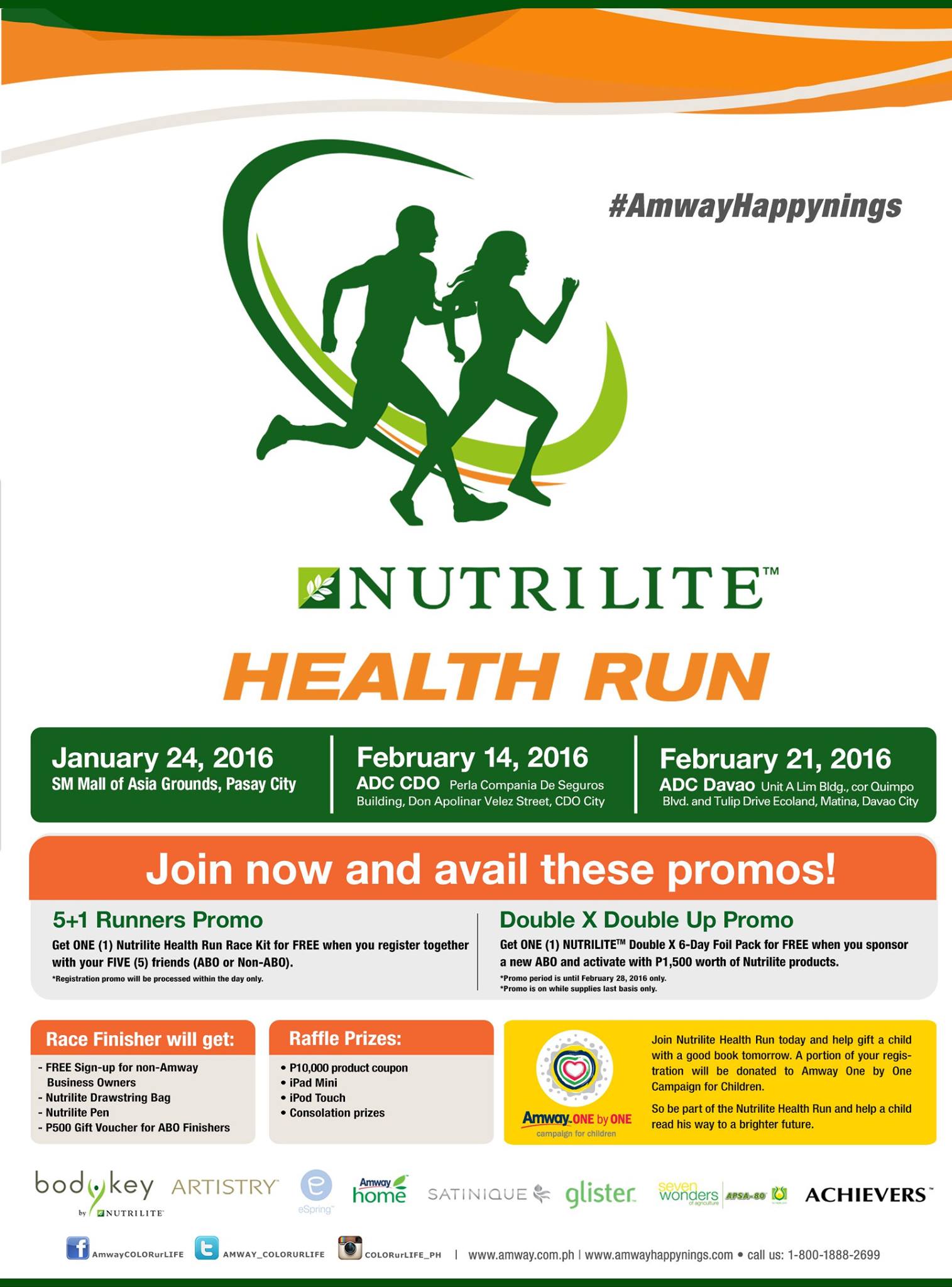 Join the Nutrilite Health Run and help give a child a good book tomorrow. A portion of the registration will be donated to Amway One by One Campaign for Children.