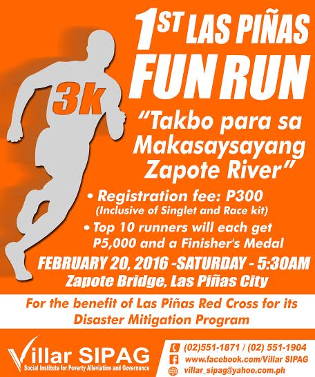 1st Las Piñas Fun Run happening on February 20, 2016 at the Zapote Bridge, Las Piñas City