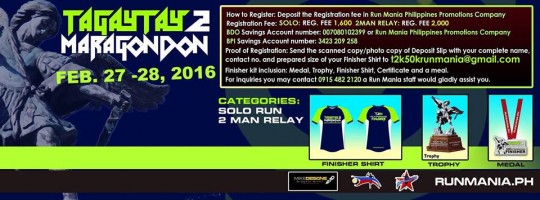 Tagaytay to Maragondon 50K Ultramarathon is the perfect venue for neophyte Ultramarathoners, given Tagaytay’s serene climate and Maragondon’s natural wonders. It’s happening on February 27 to 28,2016.