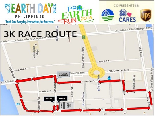 *SM Mall of Asia (April 15 – 17; 10AM – 8PM) * – Exact location: TO BE ANNOUNCEDOnline Registration Link: https://bit.ly/PROEARTHRUN2016 or https://www.earthdayphilippines.org/index.php/support-us/pro-earth-run-2016