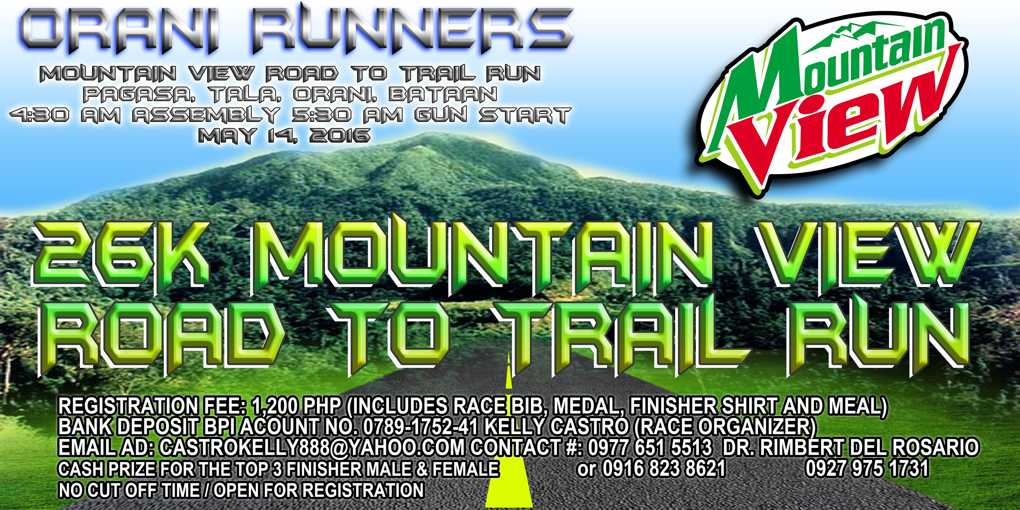 For updates. Please do check our facebook page. https://www.facebook.com/MountainViewRoadtoTrail26k