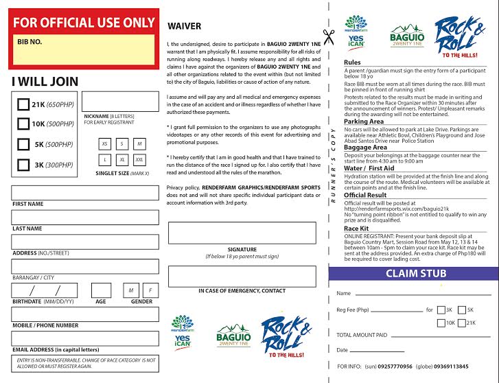 NOTE: Race Kit Claiming: May 11,12,13 at Baguio Country Mart, Session Rd