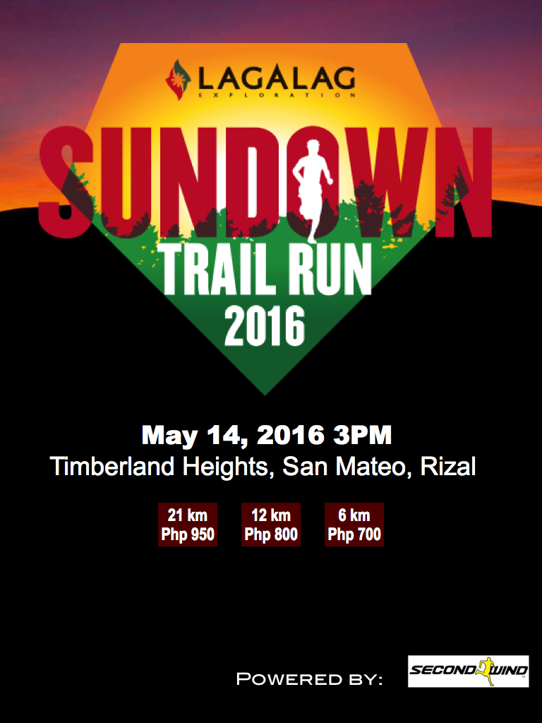 The Lagalag Sundown Eco-Trail Run will be the first of the Lagalag trail running series this year. It’s happening on May 14, 2016 at Timberland Heights, San Mateo, Rizal. This race is open for both newbies and veteran trail runners.