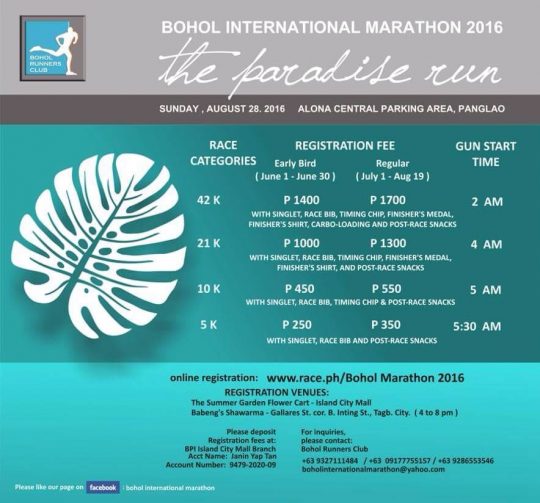 *Online Registration -> https://www.race.ph/BoholMarathon2016