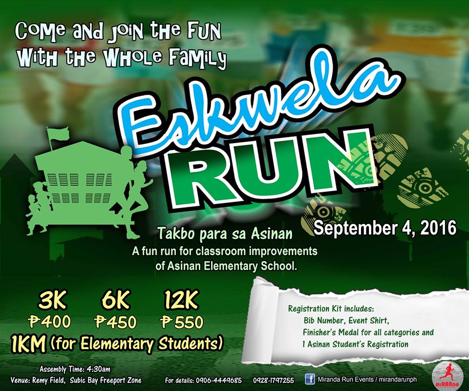 Eskwela Run aims to bring people of the community together through a healthy activity and at the same time raise funds for classroom improvement and repair of Asinan Elementary School, Olongapo City.