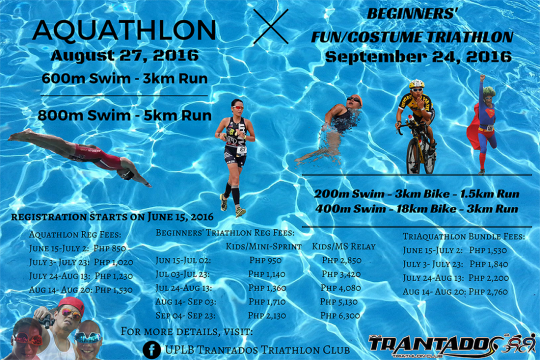 August 27, 2016 (Aquathlon) | September 24, 2016 (Costume Triathlon)