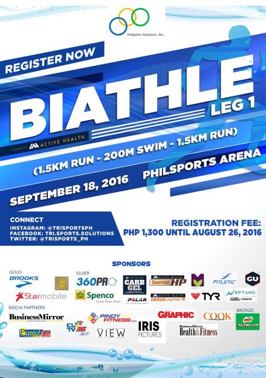 Are you ready to RUN – SWIM – RUN? Biathle Leg 1 is happening on September 18, 2016 at the Philsports Arena