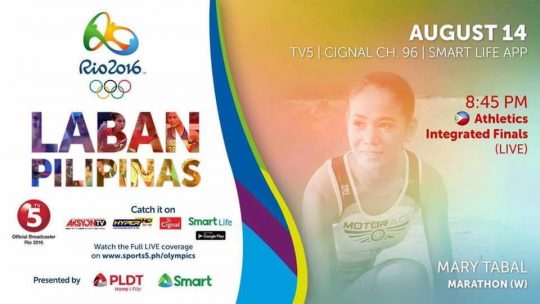 Time to show your support! Watch Mary Joy Tabal as she represents the Philippines at the Women’s Marathon LIVE tonight at 8:45PM.
