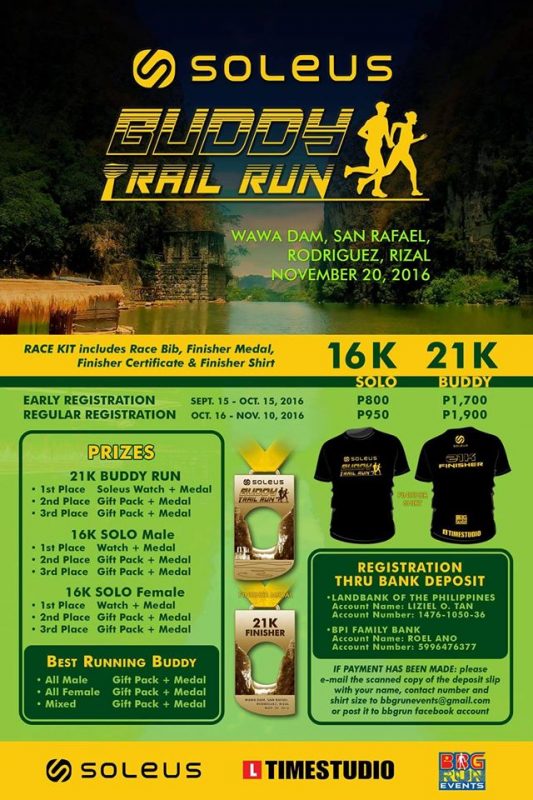 Run the Trails of Rizal with a Buddy! Soleus Buddy Trail Run is set to happen on November 20 in Wawa Dam Rizal, featuring a 16K Solo and 21K Buddy distance traversing the scenic landscape of Rizal.