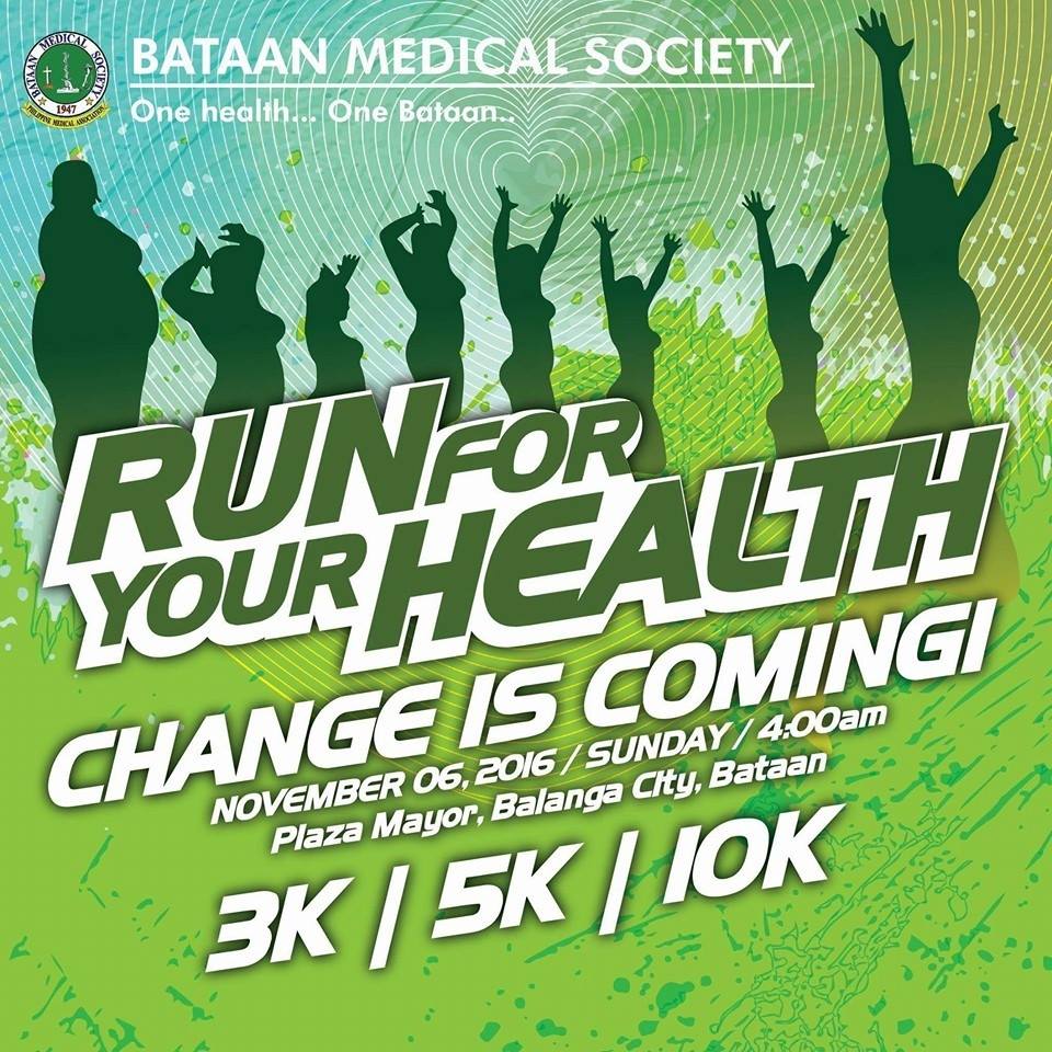 Run For Your Health is a fundraising project for the medical missions of Bataan Medical Society. It’s happening on November 6, 2016 in Balanga, Bataan.