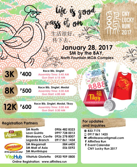 Celebrate Chinese New Year with a Run! Affinitea is once again hosting the CNY Lucky Run happening on January 28, 2017 in SM Mall of Asia, By the Bay.