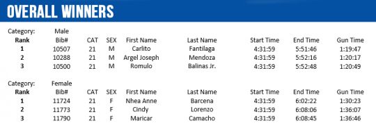 Congratulations to all who supported and finishers of the recently concluded Pinoy Fitness 21K Challenge 2016 held at SM Mall of Asia, SM By the Bay! Here are the official race results and some photos.