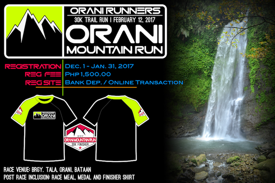 Orani Mountain Run is a 30K Trail Running Event happening in Brgy. Tala, Orani, Bataan on February 12, 2017.