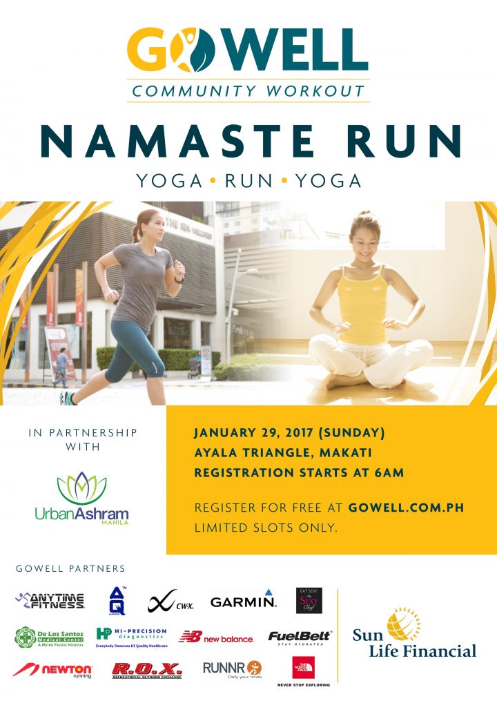 GoWell is inviting everyone for another Community Workout event happening on January 29 in Ayala Triangle in Makati. GoWell Namaste Run is a unique yoga-run-yoga workout event in partnership with Urban Ashram.