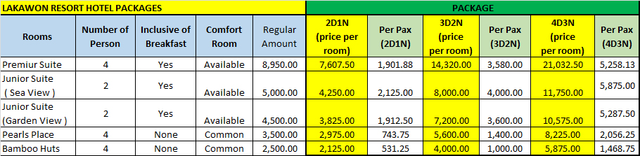 c. For booking requirements you may call Lakawon Island Resort Reservations Desk at 0917 555 6979 or 0917 502 2625