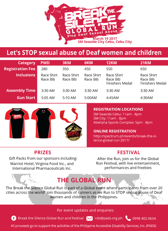 On Sunday 19 March, 2017, PADS is hosting approximately 5,000 global change-makers of all abilities and ages to participate in Break the Silence: The Global Run, in cities around the world. Our goal isn’t to break world records. Instead, our goal is to generate a wave of awareness across the globe which will contribute to the eradication of the sexual abuse of Deaf women and children.