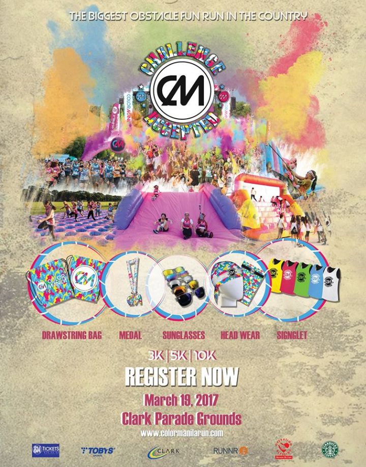 Don’t miss out on the biggest color obstacle fun run! Color Manila Challenge Clark is happening on March 19, 2017 at the Clark Parade Grounds in Pampamga.