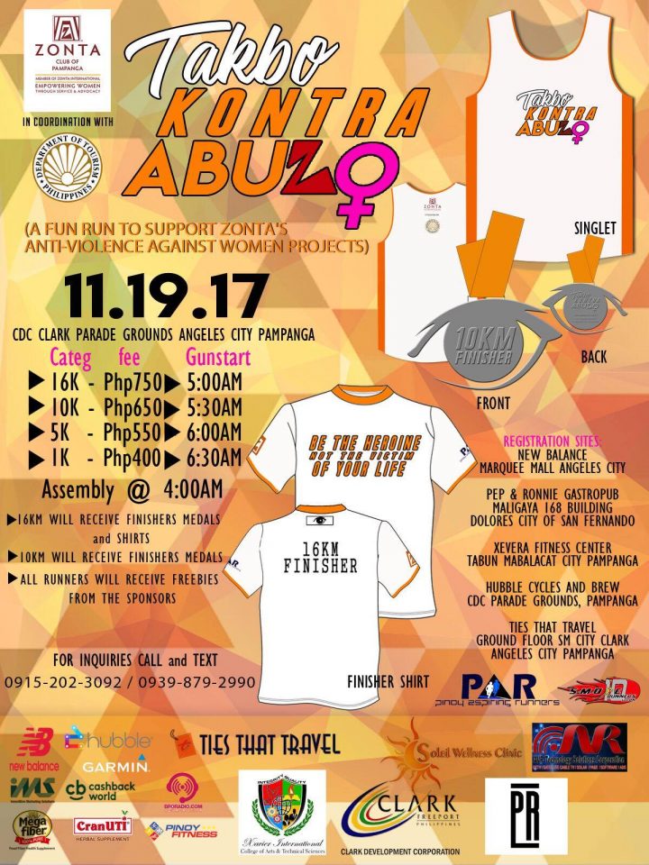 A project of Zonta Club of Pampanga (a group intending to fight violence against women and children) in partnership with Department of Tourism R3. The activity aims to raise funds for Zonta’s projects, educate the participants on the importance of ending violence against women and to also promote health and wellness among women and girls.