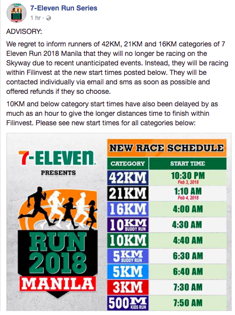 ADVISORY: 7-Eleven Run Manila ROUTE and SCHEDULE UPDATE