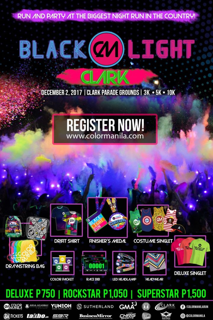 Make your year-ender run something worth remembering by signing up for the 3K/5K/10K – long CM Blacklight Clark— a colorful night run that will let you let you light up Clark while covered in a kaleidoscope of colors, and party the night away after the run!