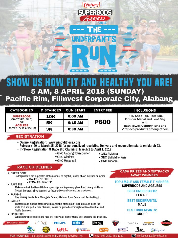 Time to show us how fit and healthy you are! Join the Century Tuna The Underpants Run happening on April 8 in Filinvest City Alabang!