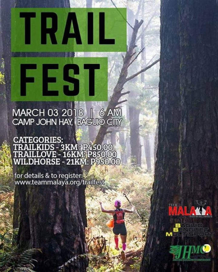 Team Malaya is excited to bring you Trail Festival, a trail run that will be held on March 3, 2018, at Camp John Hay, Baguio City. It is a celebration and appreciation of all our fellow trail runners and outdoor enthusiasts who have been with us through the years. But anyone who has a passion for trail running or wants to try the sport is more than welcome to join!!!