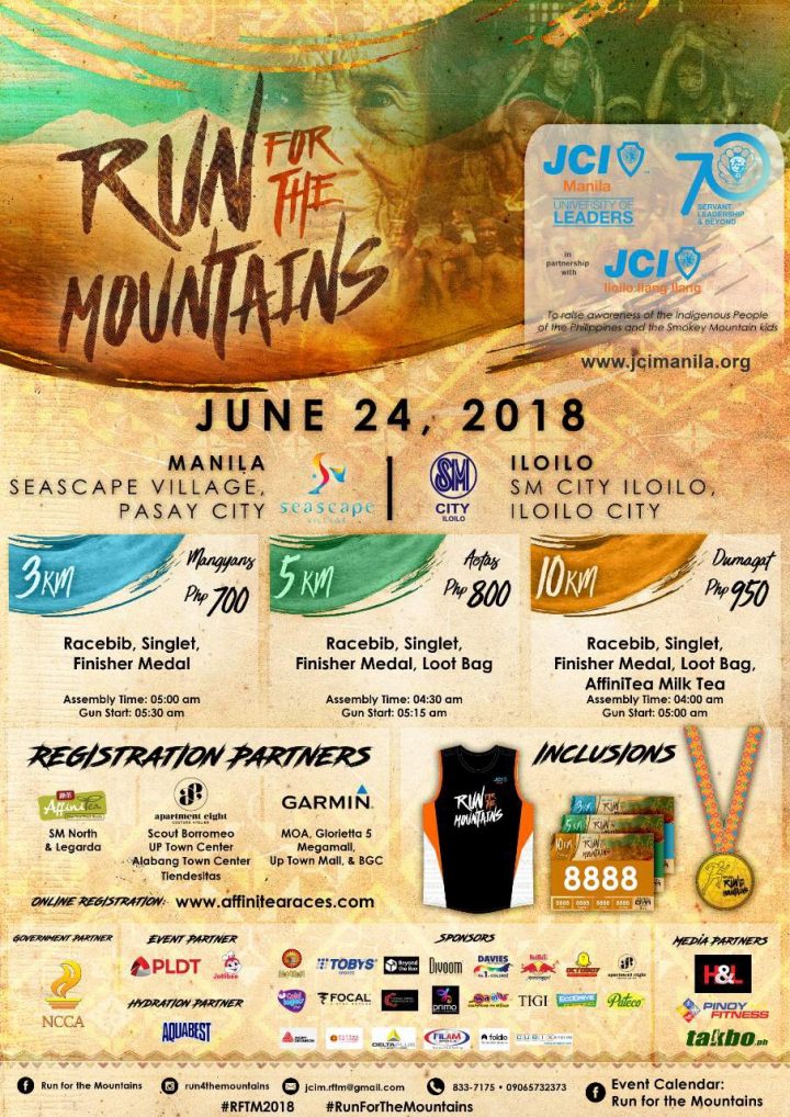 Affinitea Races, together with the Junior Chamber International (JCI), a worldwide non-profit organization of young people between 18 and 40 years old, presents the Run for the Mountains 2018, an annual family fun run to support some of the indigenous people in the Philippines, namely the Dumagats, Mangyans, Igorots, Aetas, and the Smokey Mountain Community Field of Dreams.