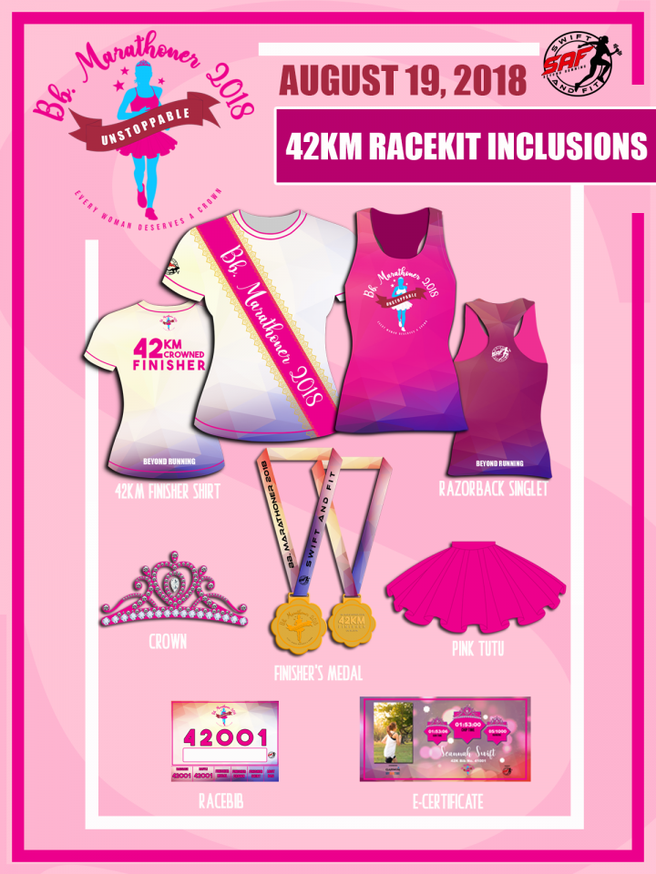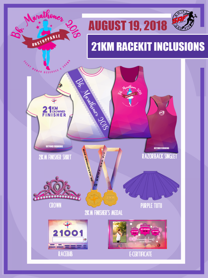 – Inclusive of Race bib, Full Sublimated Singlet, Tutu, Crown, medal, and E-Certificate with race result.