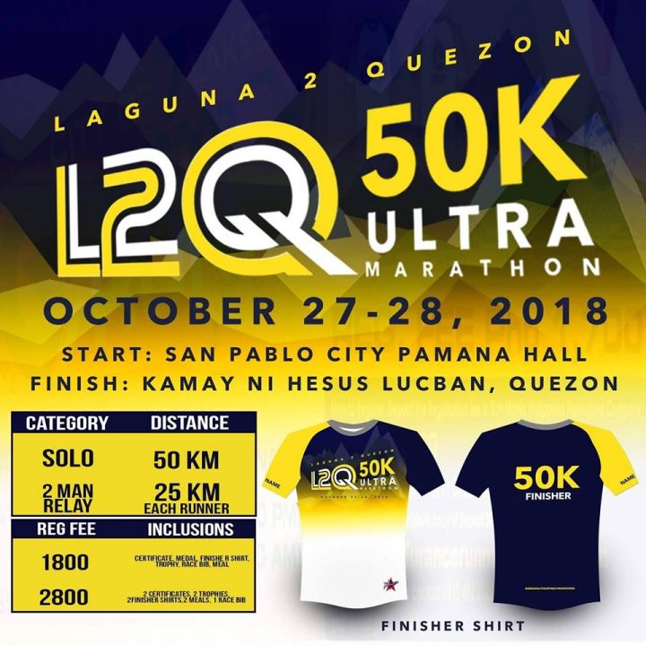 Run Mania Philippines Promotions Co. proudly presents the Laguna to Quezon 2018 happening on October 27-28, 2018 from San Pablo City to Kamay ni Hesus at Lucban, Quezon.