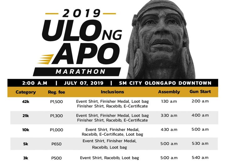 Ulo ng Apo Marathon 2019 is an annual running event held in Olongapo City featuring a 42.195km full marathon. If you want something extra ordinary and challenging route for your half or full marathon, then this is for you!