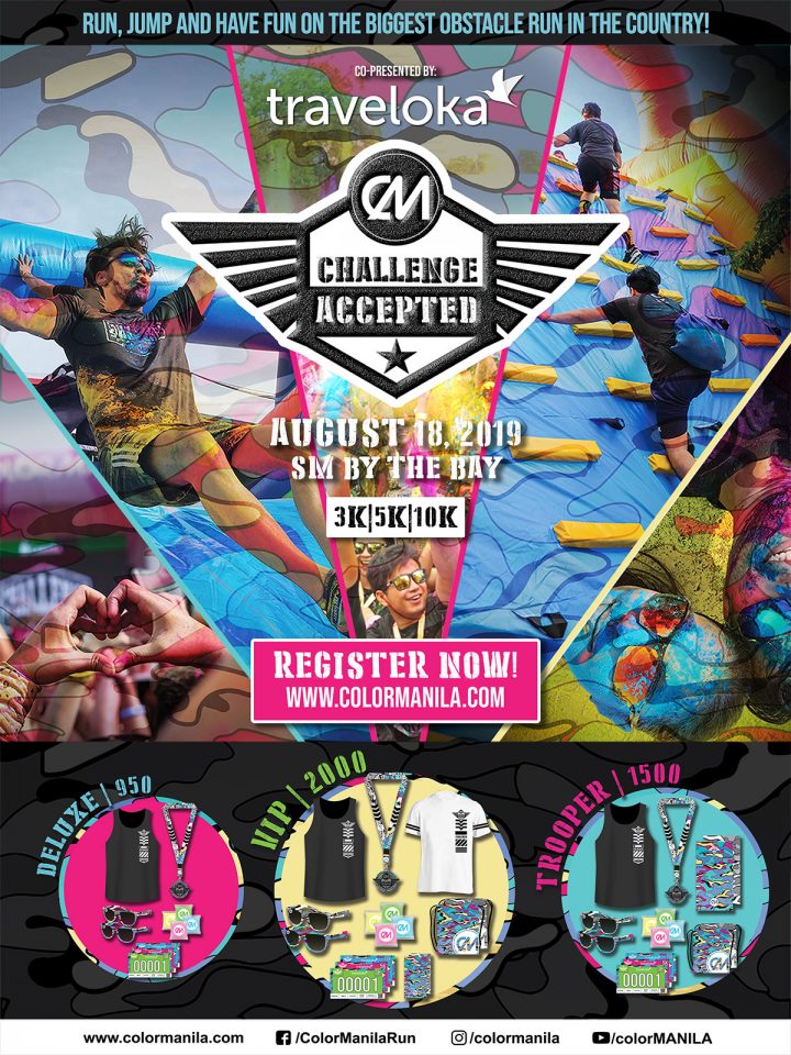 COLORMANILA CHALLENGE is back and ready to take on new challengers this year. Run, crawl, climb, skip, slide, and traverse from one OBSTACLE to another.