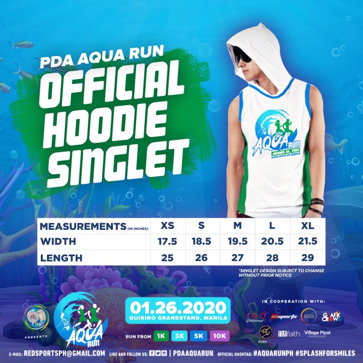 – Inclusive of a Hoodie Singlet, Race Bib, Bubbles, Finisher Medal, Water Gun, Towel, String Bag with freebies