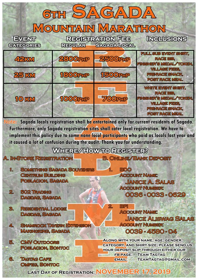 Sagada, a town nestled in the rugged Cordillera ranges of Northern Luzon, is a haven for the adventure seekers and the wanderers. The municipality boasts of caves, limestone cliffs, rice terraces, waterfalls and beautiful sunrise among others- breathtaking and captivating to both the seasoned traveler and the young adventurer. It will definitely be a friend and a foe to the runners who brave its slopes and mountains capes.