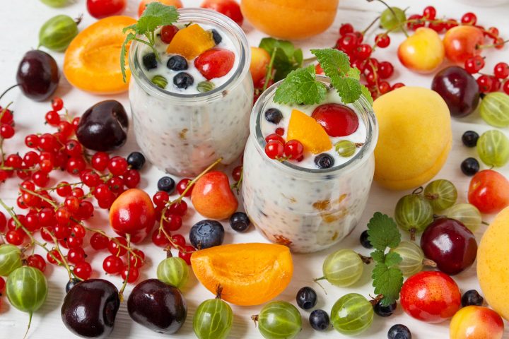 - In a separate container add chia seeds to yogurt and soak overnight in the chiller