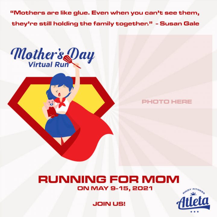 Let’s all run for our Super MOMS on Mother’s Day! Dedicate a 5K, 10K, 21K (cumulative) to show your mom how much you care and love them!