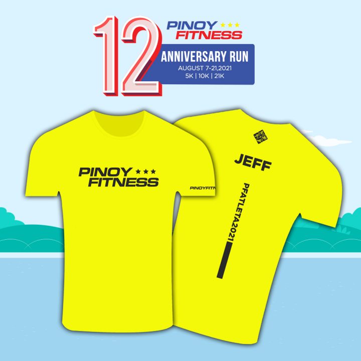 Join us and pledge to run a 5K, 10K, 21K (cumulative) between August 7-21 to earn the Pinoy Fitness Anniversary Run Virtual Badge for FREE or support us by availing of our limited edition personalized 2021 PF Atleta Anniversary Shirt for only P595!