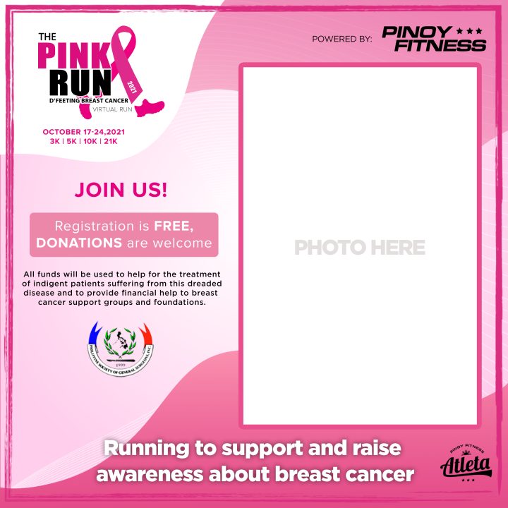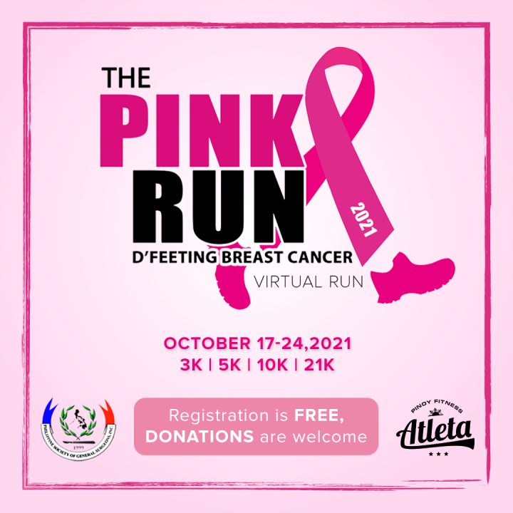 “The Pink Run: D’Feeting Breast Cancer” is the primary activity of the PSGS in its advocacy against breast cancer. This annual running event started in 2010 and is aimed at raising public awareness about breast cancer. Its objective is to focus attention on breast cancer during and after the event through educational campaigns, information drives, and lay fora. It is also held to raise funds for the treatment of indigent patients suffering from this dreaded disease and to provide financial help to breast cancer support groups and foundations.