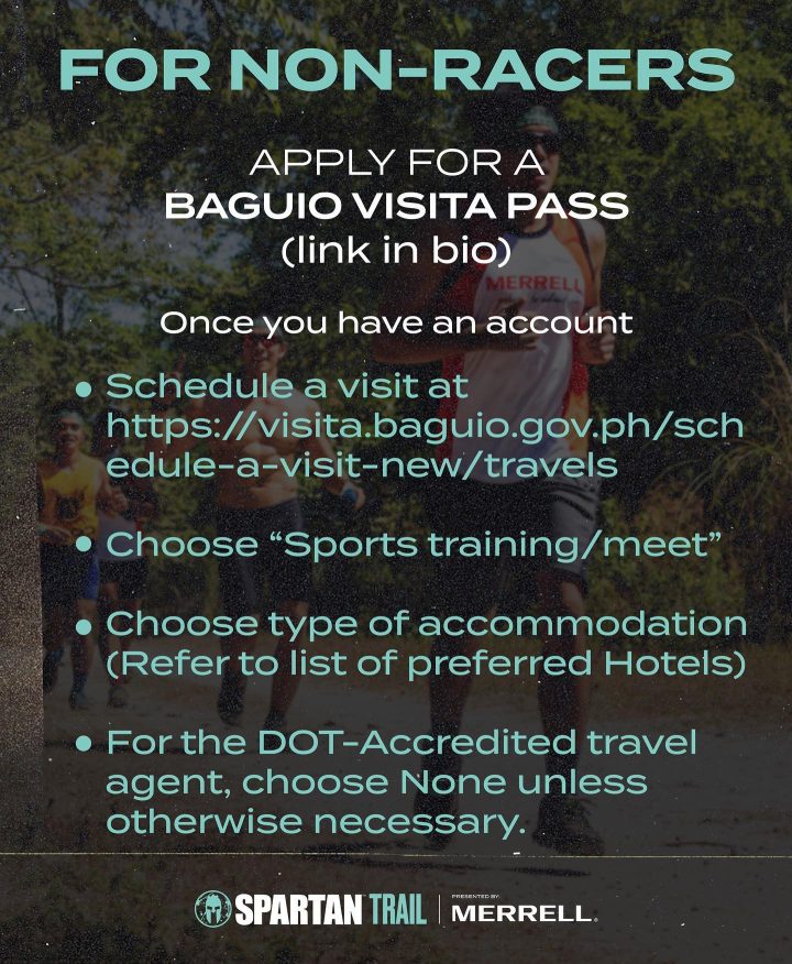 In compliance with Baguio’s local government unit (LGU) protocol, participants and spectators are required to have a Baguio Visita Pass and accomplish a health declaration form prior to entry in the city.