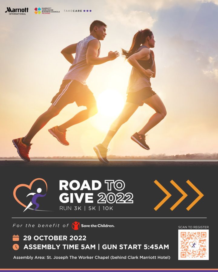 Run to Give returns this year under the new name of ROAD TO GIVE, one of Marriott International’s high-key events within Asia Pacific. Hosted by Marriott Business Council Philippines and Marriott’s global well-being program TakeCare, Road to Give 2022 supports Save the Children Philippines to provide emergency and long-term support to improve the quality of life for children.