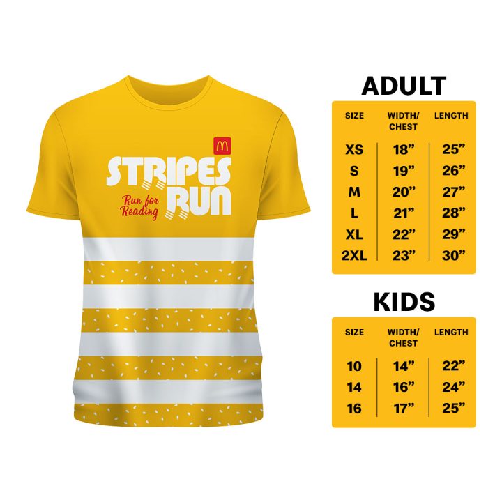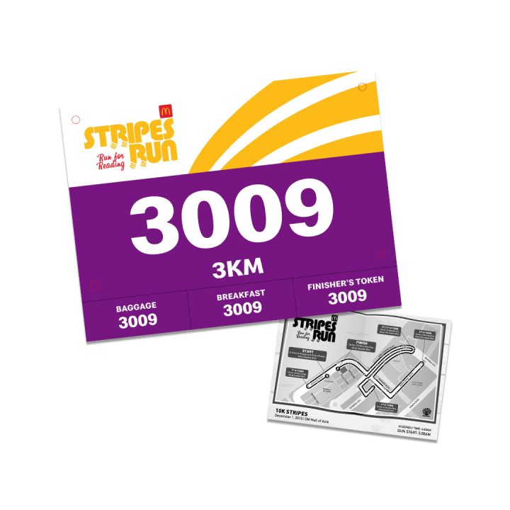 – Stripes Run Shirt, Race Bib, Map, Sausage McMuffin with (Regular Coffee or Minute Maid Orange Drink) and Finisher’s Token