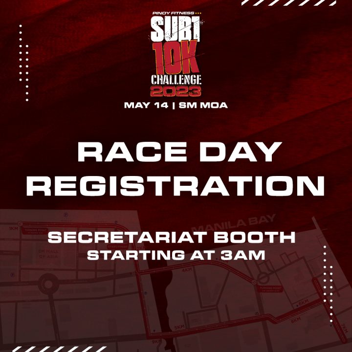 We’re opening RACE DAY registration for PF SUB1 10K Manila on Sunday starting at 3AM. Please proceed to the secretariat booth to secure a kit.