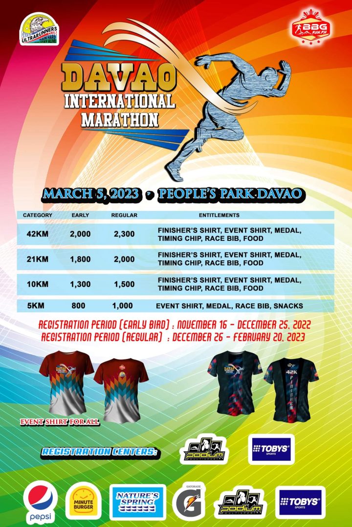 Davao International Marathon is happening on on March 5, 2023 at the People’s Park in Davao.
