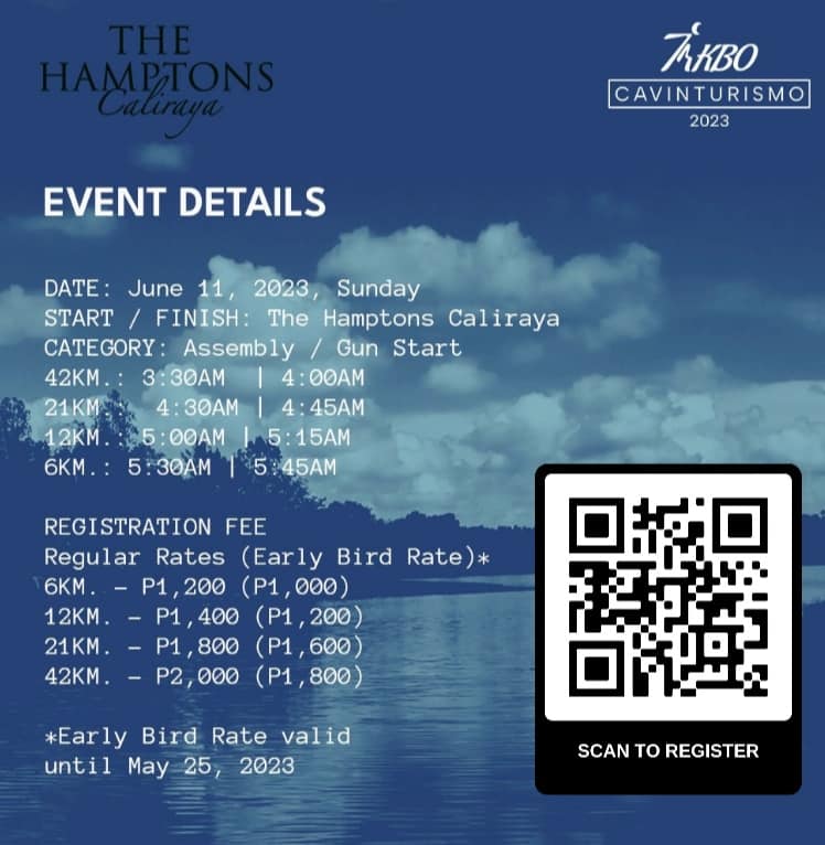 The race will commence and conclude at The Hamptons Caliraya, a 300-hectare modern development situated along Lake Caliraya that boasts high-end recreational amenities and an exclusive residential village. Through Takbo Cavinturismo, Cavinti seeks to promote its unique natural beauty and attract more visitors to the municipality.