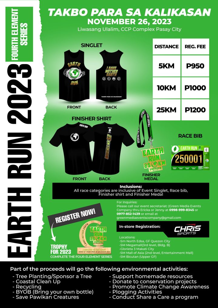EARTH RUN, the fourth installment in the elemental series of Takbo Para Sa Kalikasan (comprising Fire, Water, Air, and Earth Runs), proudly steps into its 5th year. Spearheaded by the Green Media Events Company, this annual benefit run series persists even amidst the challenges of the pandemic. Their unwavering mission is to inspire the community to actively engage in environmental preservation, especially given the severe repercussions of global warming.