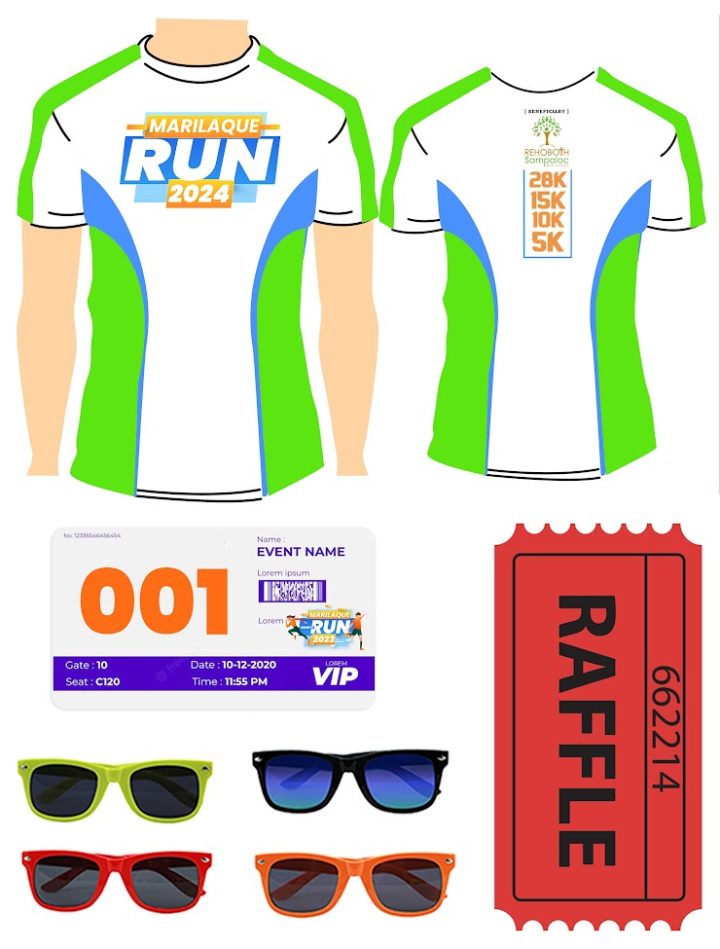 INCLUSIONS: 👕Running Shirt, 🕶Sunglasses, 🎫Race bib, 🎟Raffle Entry
